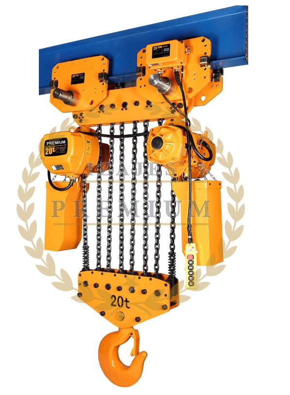 Tecle o polipasto con trolley eléctrico PREMIUM HOIST. ha sido fabricado bajo una serie de avances tecnológicos con un cuerpo de aluminio para su mejor maniobrabilidad, sistema de freno electromagnético, contactores CHNT de uso industrial pesado, voltaje doble 220/380 o 220/440.